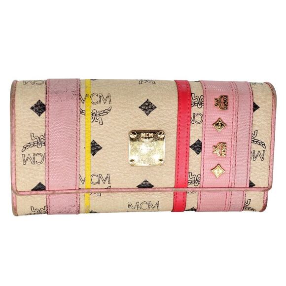 MCM Visetos Monogram Long Pink Gold Hardware Wallet MM-W1005P-A006