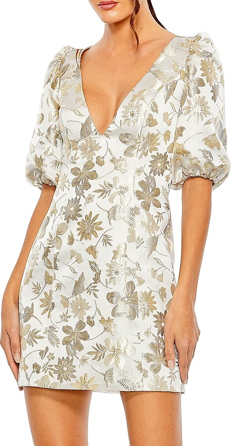 - Women's Fashion >Clothing >Dresses >Mini Dresses > Mac Duggal Women's V-Neck Jacqaurd Minidress - White Gold - Size 2